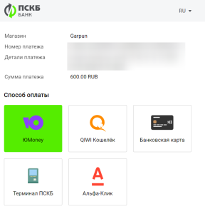 Перейдя на платежный шлюз, вы сможете оплатить использование системы Garpun одним из удобных вам способов: